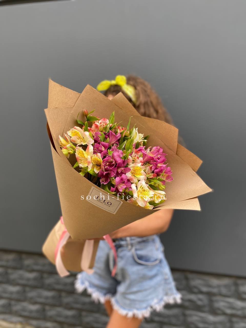 альстромерии - 9 веток, лента, крафт.