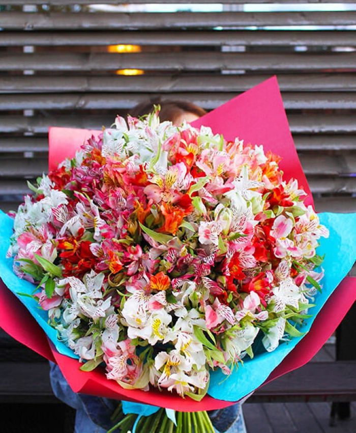 альстромерия - 101 ветка, лента, дизайнерская упаковка.