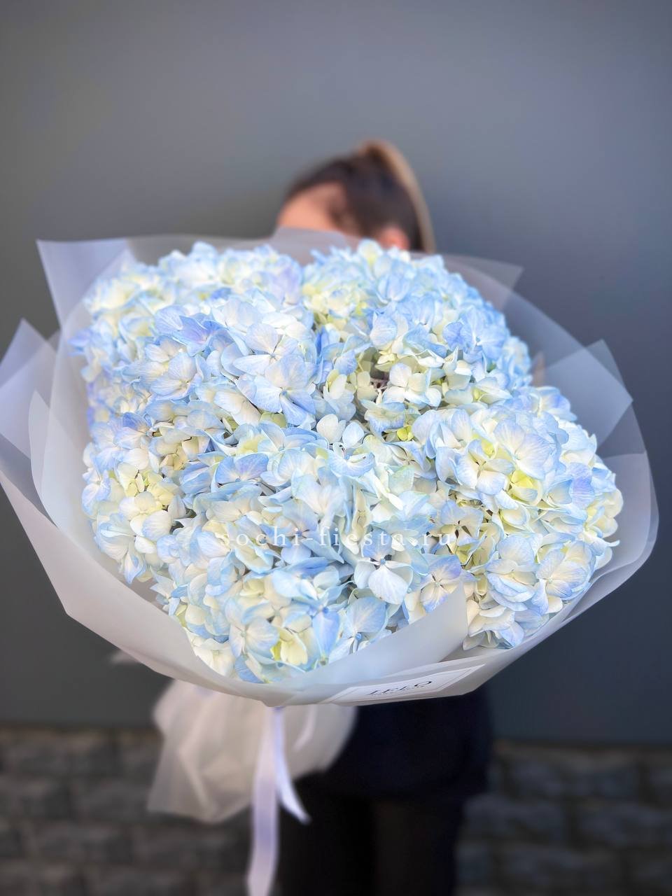 гортензия - 7 шт., лента, дизайнерская упаковка.