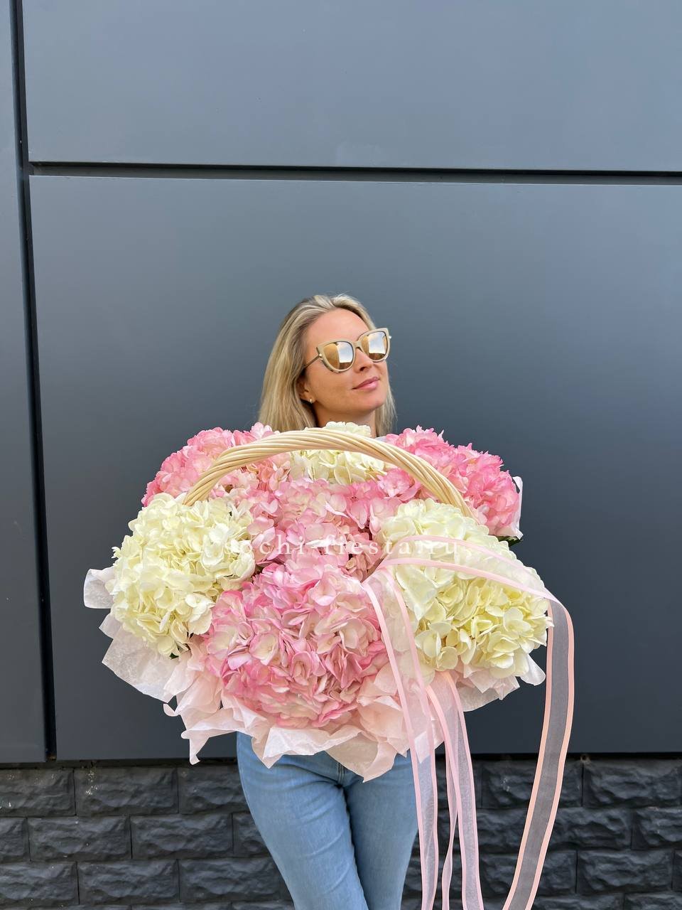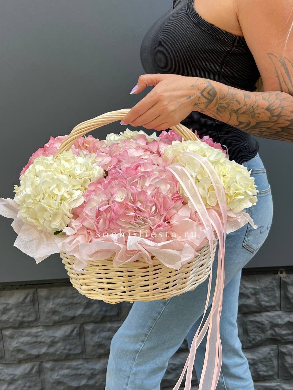 гортензия 15 шт., лента, дизайнерская упаковка.