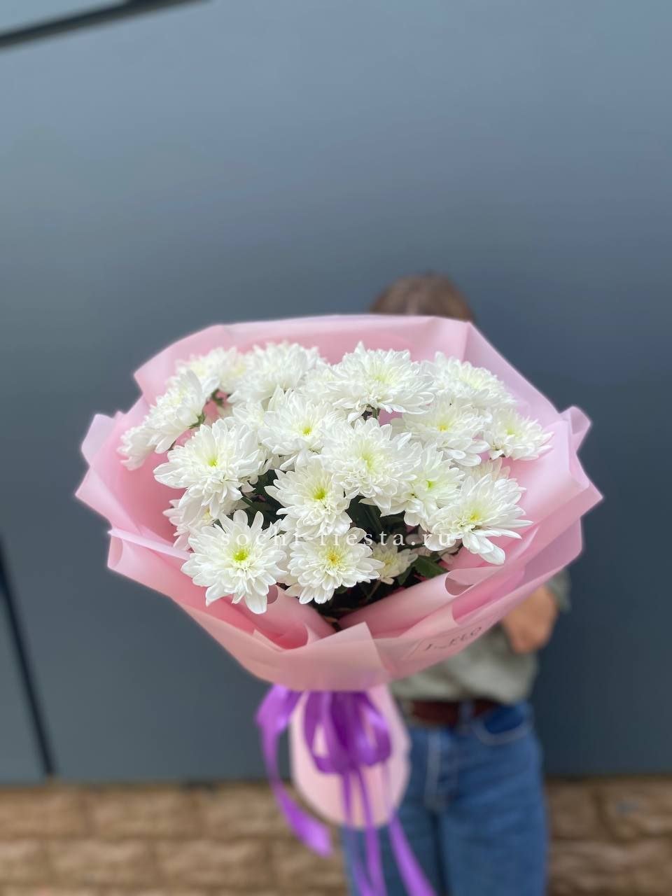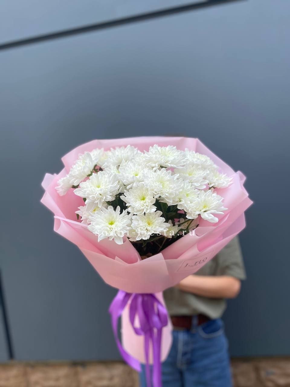 Двадцать пять веток кустовой хризантемы в миксе оттенков образуют живописное полотно. Каждый цвет звучит самостоятельно и при этом перетекает в соседний, создавая динамичную композицию.