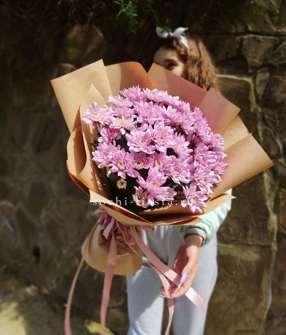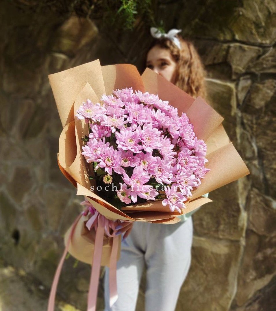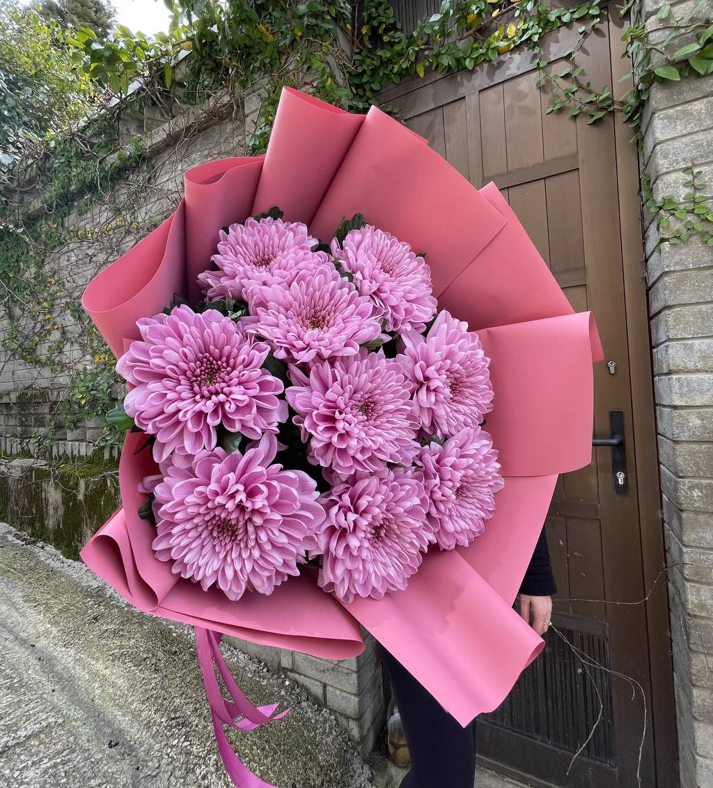 Семь пышных хризантем с коробочками хлопка собраны в мягкую композицию пастельных оттенков. Воздушная сборка и естественные линии создают ощущение легкости. Букет для тихих встреч и теплых слов.