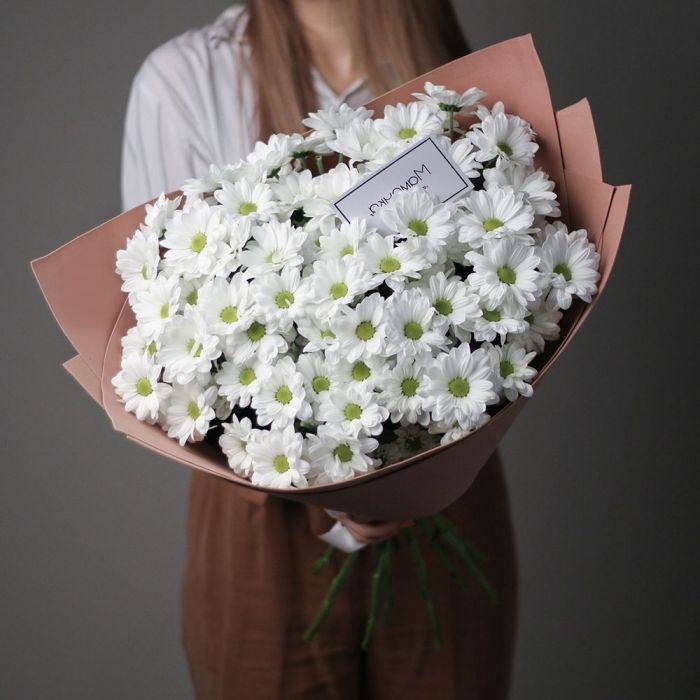одноголовые хризантемы Бигуди, лента Количество на фото 15 шт.
