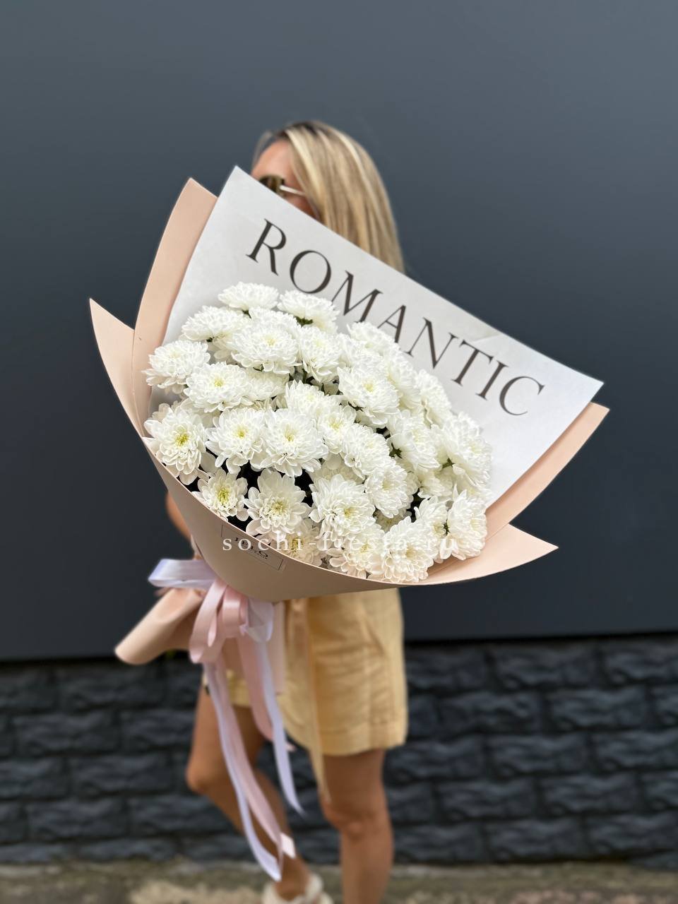 хризантема кустовая -9 шт., лента, дизайнерская пленка.