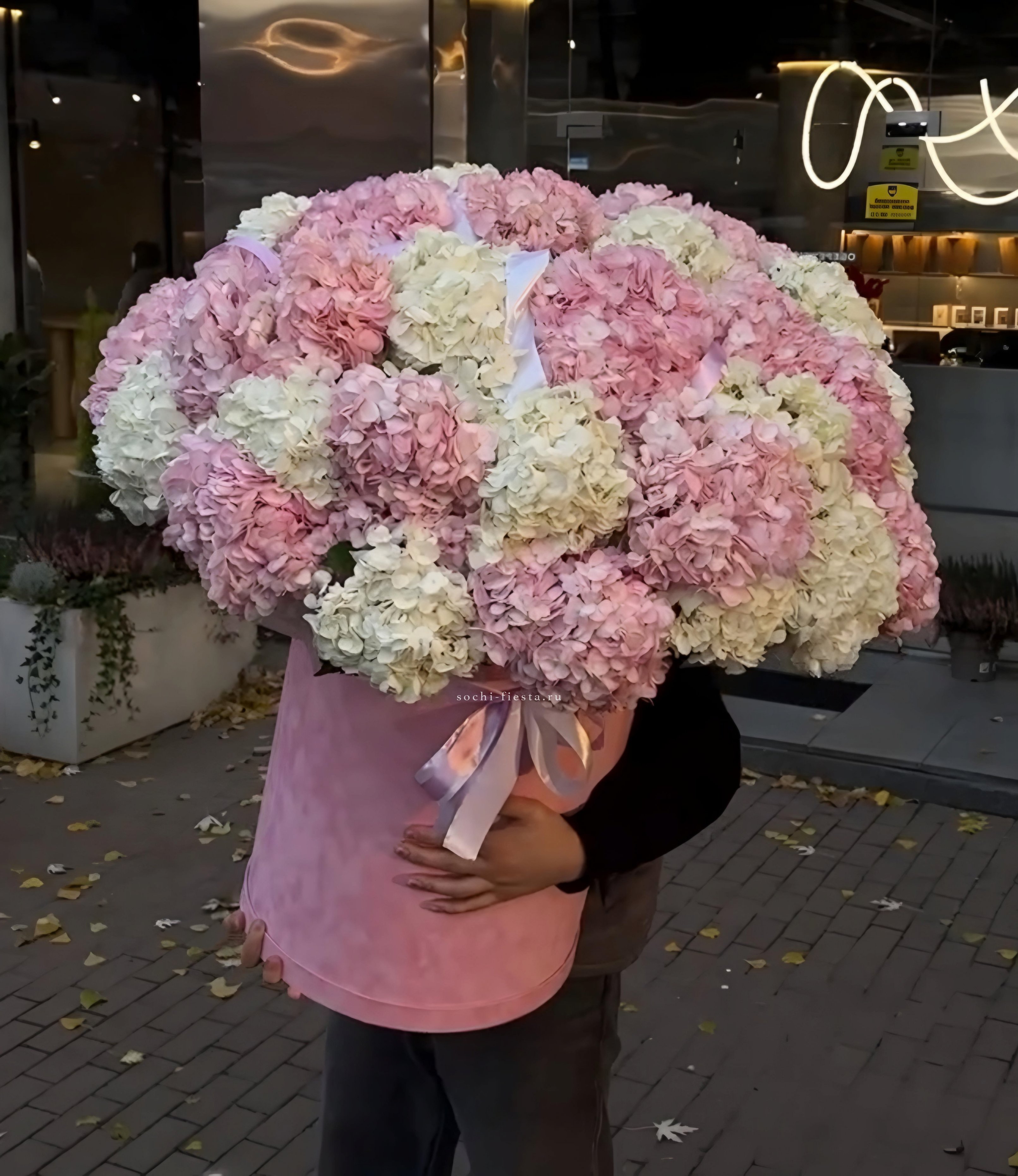 гортензия, бархатный цилиндр. По желанию заказчика, композицию можно оформить в корзину.