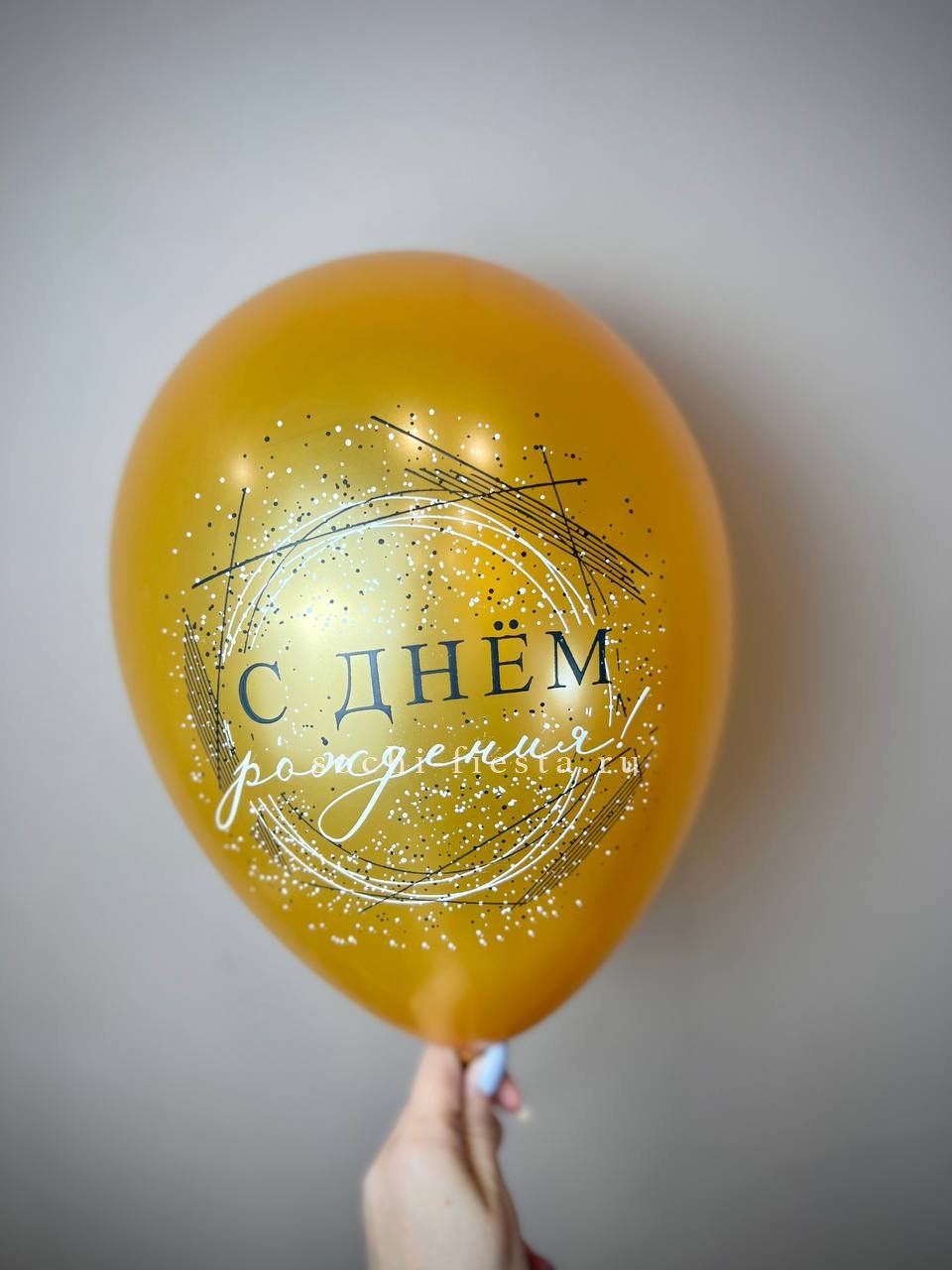 Гелиевый латексный шар С днем рождения! (золото, черный, белый)