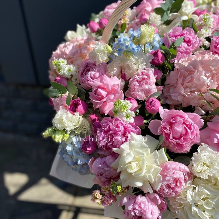 Каждый сезон приносит в Тамбове свой ассортимент корзин. Весной флорист создаёт корзины с тюльпанами и нарциссами — лёгкие, нежные, полные ощущения обновления. В мае-июне приходят пионы — Sarah Bernhardt, Bowl of Cream, Red Charm — главный флористический праздник. Осенью — хризантема в тёплых гаммах с декоративными ягодами и ветвями. Зимой — хвойные аранжировки с амариллисом для праздничной атмосферы.