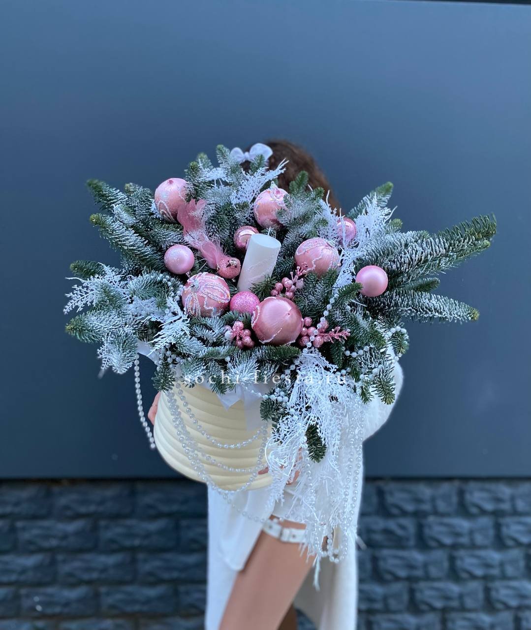 нобилис, цилиндр, оазис, свечи, новогодние игрушки, декор ВНИМАНИЕ! Готовая композиция (декор) может иметь незначительные внешние отличия от примера на фотографии.