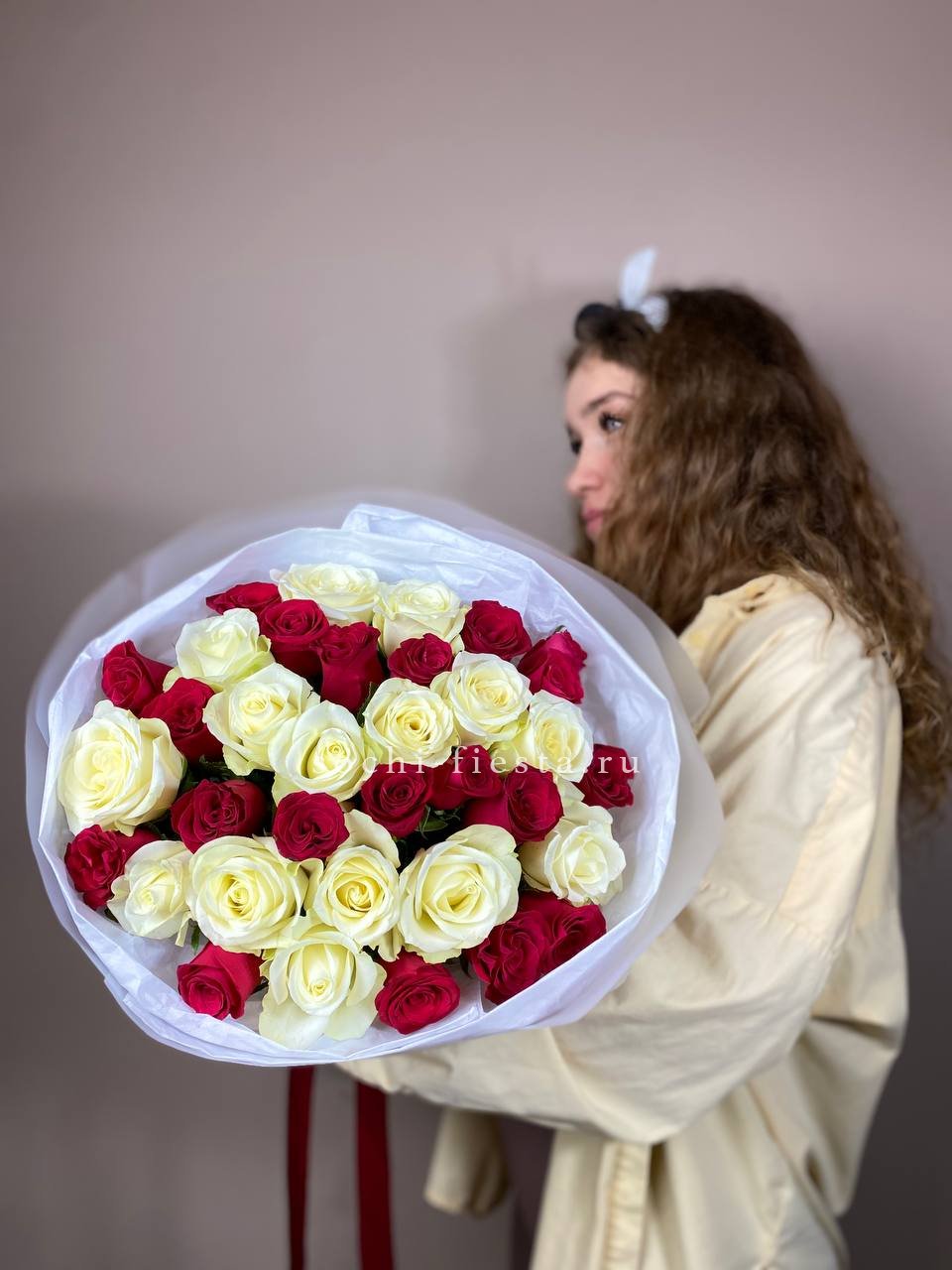 Для заказа товара "Букет из красных белых 35 роз" с доставкой в Тамбове нажмите в корзину