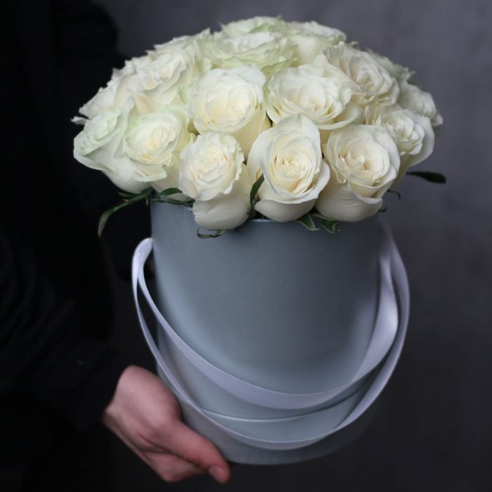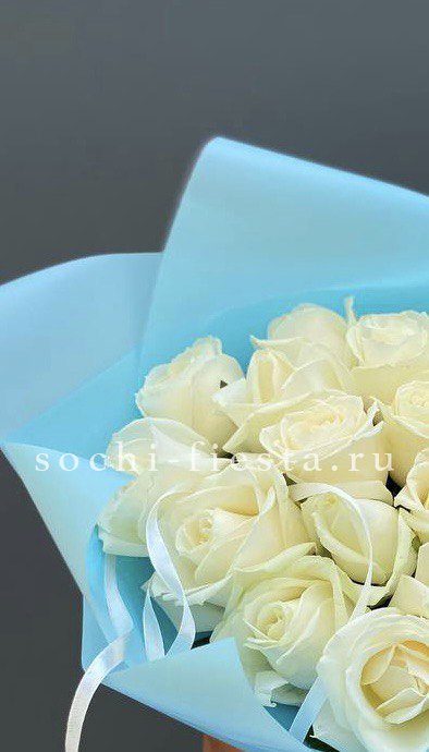 21 белая роза, лента, упаковка на выбор.