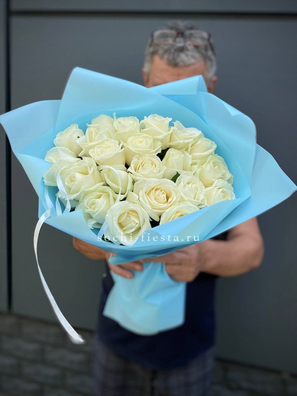 Белоснежные лепестки создают ощущение света и простора. Двадцать один бутон образует воздушную композицию с мягким переходом оттенков. Букет дарит момент тишины и покоя.