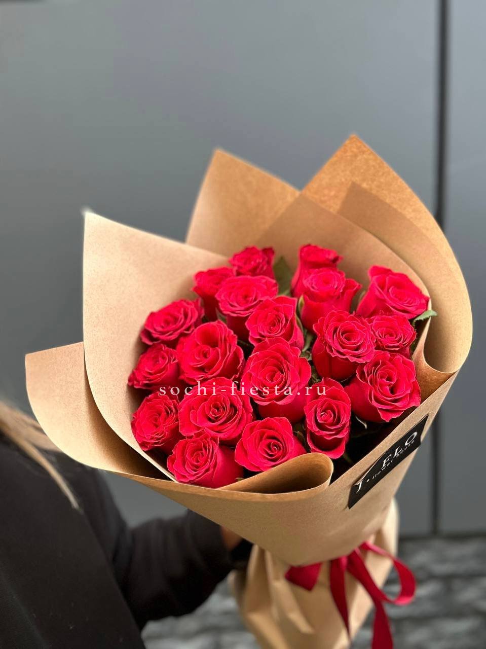 19 красных роз в крафте