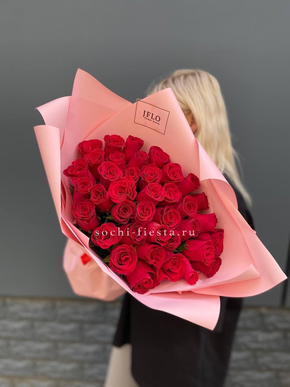 Red Naomi в графичной упаковке BLVCK — это игра между классическим красным и современной подачей. Плотные бутоны раскрываются медленно, сохраняя форму и насыщенность цвета.