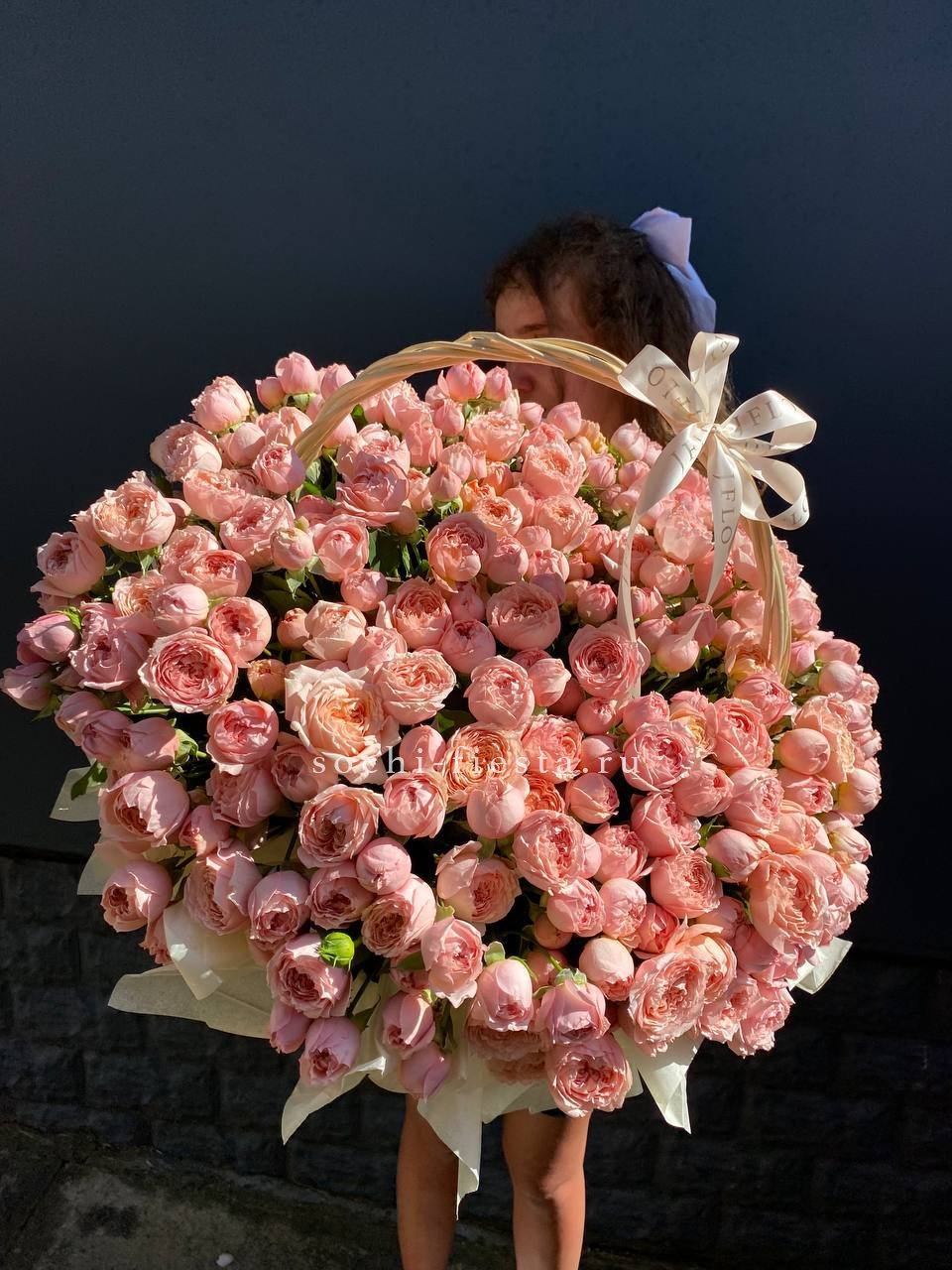 Корзина из пионовидных роз