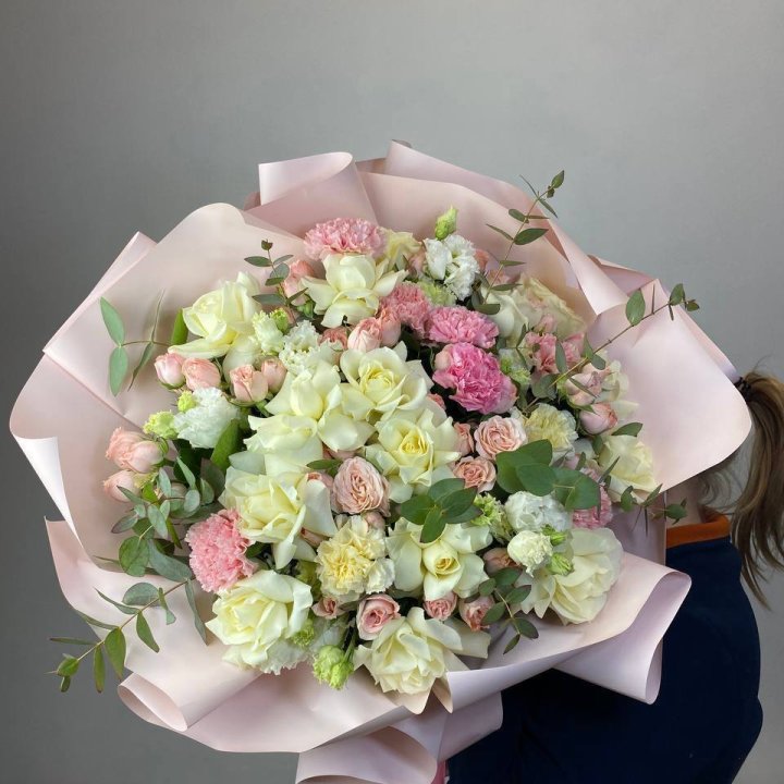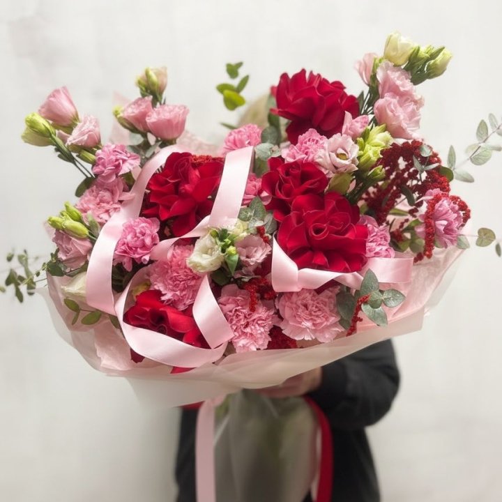 Зима и лето в Тамбове — розы и хризантемы как основа. Эти виды стабильны в поставках круглый год. Флорист дополняет их сезонными акцентами: хвойные ветви зимой, открытая эустома летом. Сборный букет в любое время года выглядит живым и актуальным.