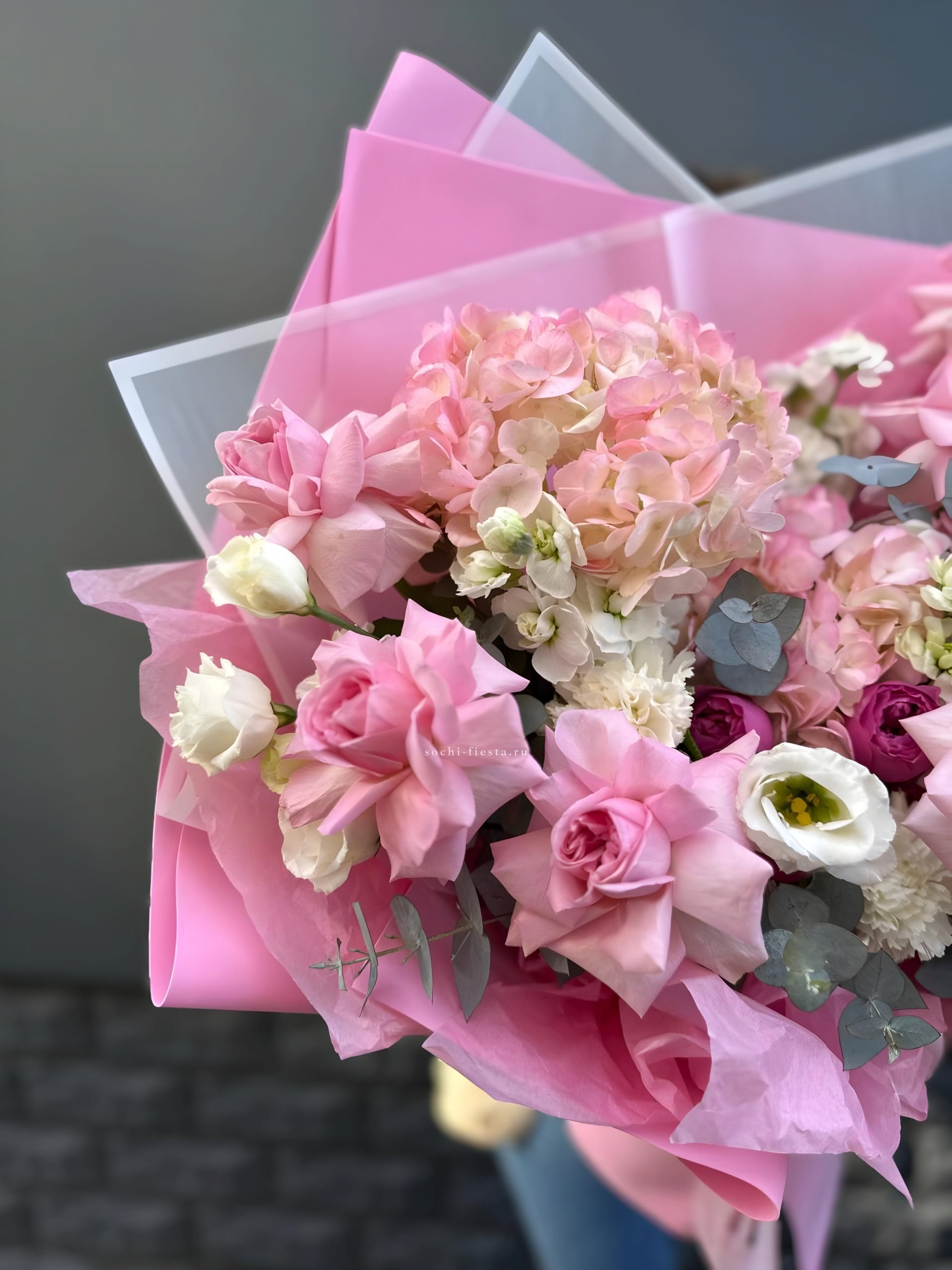Букет белых гортензий и пионовидных роз
